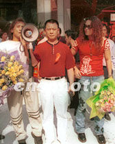 臺(tái)灣歌手齊泰、迪克·牛仔等,將于五月十二日在廣州舉行一場(chǎng)音樂創(chuàng)世紀(jì)大型演唱會(huì)。圖為齊泰、迪克牛仔十一日抵穗與廣州歌迷見面。中新社圖 劉衛(wèi)勇 攝