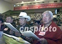 西藏自治區(qū)七屆人大四次會議13日拉薩舉行,藏傳佛教界人士認(rèn)真聆聽大會發(fā)言。中新社記者 滿會喬 攝