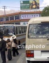 拉薩街頭的現(xiàn)代氣息日漸濃厚,達(dá)芬奇名畫中帶著神秘微笑的蒙娜麗莎,被印制在陶瓷制品上,豎立的街頭。中新社記者 滿會喬 攝