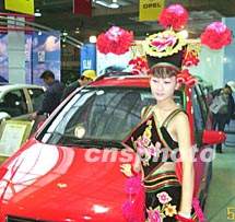 正在昆明舉行的五月“世博2001”汽車品牌展示會上,唯一身著少數(shù)民族服飾的模特令人耳目一新。中新社記者 納家驊 攝