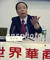 圖文:世界華商大會(huì)誠邀美國華商赴南京共襄盛舉 2001年05月23日 07:02 ![]() 美東時(shí)間21日下午,中華全國工商業(yè)聯(lián)合會(huì)副主席王以銘在紐約舉行的新聞發(fā)布會(huì)上說:第六屆世界華商大會(huì)將于九月十七日至十九日在中國江蘇南京召開。預(yù)計(jì)有約五千名海外華商、中國知名企業(yè)家和經(jīng)濟(jì)界人士與會(huì)。中新社記者 陳建 攝