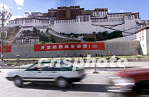 布達拉宮掛新標語慶祝西藏和平解放五十周年
