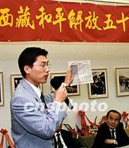 曾與海外藏獨(dú)分子有過(guò)正面交鋒的羅德島大學(xué)研究生莊輝廷,拿著一份刊有藏獨(dú)讕言的英文報(bào)紙,譴責(zé)藏獨(dú)分子捏造事實(shí),欺騙世界輿論的卑鄙行徑。他建議中國(guó)政府加強(qiáng)對(duì)外介紹西藏,讓世界知道西藏的真面目。中新社圖 龔文謨 攝