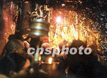 藏歷四月到拉薩大昭寺內的釋迦牟尼佛像前頂禮膜拜的藏民人如潮涌。藏歷四月是藏族著名的“轉經節(jié)”,據(jù)說是佛主誕生、圓寂、成佛和文成公主進藏的日子。中新社記者 滿會喬 攝