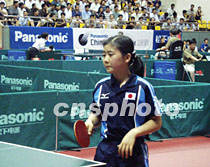 2001中國乒乓球大獎賽六月六日至九日在?谂e行。本次大獎賽年齡最小的運動員是日本運動員福原愛,年僅十二歲。她在七日的第二輪比賽中以一比三負(fù)于中國的白楊。中新社圖 莫成雄 攝