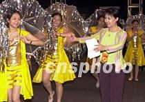 薈萃中國內(nèi)地及港、澳、臺眾多著名歌星的“同一首歌──走進澳門”大型演唱會,將于十二日在澳門文化中心上演。圖為該演唱會總導(dǎo)演、中央電視臺MTV總制片人孟欣,在彩排時對擔(dān)任伴舞的澳門中學(xué)生進行演出指導(dǎo)。中新社記者 宗金柱 攝