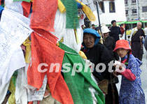 圖;拉薩街頭轉經朝圣的祖孫 2001年06月22日 11:07 ![]() 西藏拉薩每天圍繞大昭寺轉經朝圣的藏民絡繹不絕,一位藏族老奶奶帶著身穿漂亮衣服的孫女走在轉經的行列中。中新社記者 滿會喬 攝