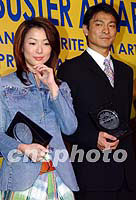 ![]() 香港演星劉德華29日在香港繽紛荷里活餐廳領(lǐng)取2001年港臺最受歡迎男演員獎項時,接受影迷贈送的祝賀禮物。中新社記者 洪少葵 攝 ![]() 百視達(dá)公司主辦的“2001年港臺最受歡迎的男女演員”頒獎禮,29日在香港繽紛荷里活餐廳舉行,主辦機(jī)構(gòu)將獎項頒發(fā)予臺灣與香港觀眾投票選出的男女演員得獎?wù)邉⒌氯A、鄭秀文。中新社記者 洪少葵 攝