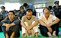 圖:中國首宗偽造二十元版人民幣案開庭審理 2001年08月03日 20:53 ![]() 中國首宗偽造二十元版人民幣案三日在廣東省汕尾市中級人民法院開庭審理,八名被告共印制九九年版二十元人民幣一千九百三十萬元,為中國首例。