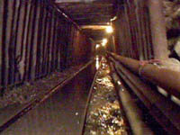 圖:廣西南丹出事礦井巷道 2001年08月08日 21:47 ![]() 中國廣西南丹事故現(xiàn)場位于礦底深處,地形復雜,積水多,要找到尸體必須把井里的水抽干,而抽干水大約需要十五天的時間。