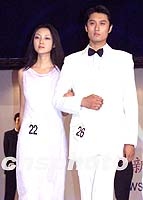 2001年新絲路中國模特大賽山西選拔賽十五日在太原市舉行,來自山西各地的四十七名男女模特選手參加了比賽。圖為選手進行晚裝和正裝展示。中新社記者 錢興強 攝