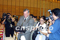 組圖:APEC中小企業(yè)工商論壇在上海閉幕 2001年08月30日 17:50 ![]() APEC中小企業(yè)工商論壇八月三十日在上海閉幕,圖為中訊集團(tuán)公司董事長兼總裁毛杏春作總結(jié)報告。中新社記者 潘索菲 攝 ![]() APEC中小企業(yè)工商論壇八月三十日在上海閉幕,圖為與會的美國代表向記者介紹他參加論壇的成果。中新社記者 潘索菲 攝