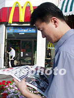 ![]() 十二日晨,美國遭襲后的消息在報紙刊登后,北京天安門廣場的游客仔細閱讀有關(guān)消息。中新社記者 錢興強 攝 ![]() 十三日晨,在北京麥當勞餐廳前,前來用餐的顧客關(guān)注報紙上報道美國遭襲消息。中新社記者 錢興強 攝