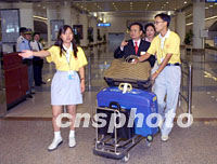 組圖:志愿者迎接即將開幕的華商大會代表 2001年09月16日 15:50 ![]() 服務(wù)于第六屆世界華商大會的志愿者十六日在南京機(jī)場迎接參加大會的來賓,華商會十七日將在南京拉開帷幕。中新社記者 史利 攝 ![]() 出席第六屆世界華商大會的國內(nèi)工商界人士十六日陸續(xù)抵達(dá)南京,來自南京各高校的志愿者在機(jī)場熱情接待來賓。中新社記者 史利 攝