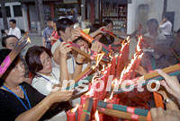 圖:華商進(jìn)香大明寺 2001年09月19日 11:38 ![]() 出席第六屆世界華商大會的千名華商九月下?lián)P州,進(jìn)香大明寺。中新社記者 史利 攝 |