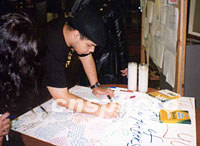 圖:紐約大學(xué)生簽名“只需要和平” 2001年09月23日 15:31 ![]() 紐約市立大學(xué)亨特學(xué)院的學(xué)生領(lǐng)袖提出一個(gè)口號:“我們只需要和平!痹S多學(xué)生在簽名表示支持。中新社圖 |
