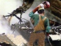圖:撞擊世貿(mào)大樓的一客機主體被挖出 2001年09月25日 15:01 ![]() 九月十一日撞擊美國世貿(mào)大樓的一客機主體日前被挖出,這截主體殘骸大約有三米長,挖出后馬上被聯(lián)邦調(diào)查局人員運走進行檢查。 |
