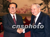 江澤民:中國(guó)加入世貿(mào)組織有利于中美經(jīng)貿(mào)合作 2001年09月28日 21:09 ![]() 中國(guó)國(guó)家主席江澤民二十八日在北京中南海會(huì)見(jiàn)美國(guó)銀行家洛克菲勒先生。中新社記者 毛建軍 攝