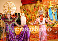 組圖:"內蒙古時裝展"中秋國慶期間在港舉行 2001年10月04日 09:29 ![]() 內蒙古民族時裝表演隊,中秋國慶期間在香港多個大型購物商場表演,巡回展示內蒙古少數(shù)民族多姿多彩的服飾文化。中新社圖 洪少葵 攝 ![]() 香港大型購物商場“青衣城”,中秋國慶假期舉辦“蒙古民族時裝表演”,瑰麗多彩的蒙古民族服飾,令顧客耳目一新。中新社圖 洪少葵 攝