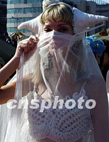 ![]() 來自俄羅斯的模特,日前在青島舉行的2001中國(guó)青島時(shí)裝周上進(jìn)行服裝展示。中新社記者 錢興強(qiáng) 攝