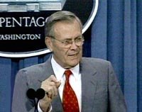 圖:美國防部長說:不能讓塔利班做恐怖分子的港灣 2001年10月08日 10:36 ![]() 美國東部時(shí)間十月七日上午,美國國防部長拉姆斯菲爾德在五角大樓的新聞發(fā)布會上說:美國今天對阿富汗進(jìn)行軍事攻擊,目標(biāo)是讓恐怖分子無法再使用塔利班作為他們的港灣。攻擊目標(biāo)主要是塔利班的機(jī)場,還有其它的軍事設(shè)施和軍事基地。 |