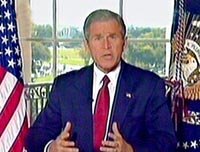 圖:布什發(fā)表講話宣布對(duì)阿富汗發(fā)動(dòng)軍事進(jìn)攻 2001年10月08日 10:45 ![]() 北京時(shí)間八日凌晨一時(shí)左右,美國(guó)總統(tǒng)布什在白宮官邸發(fā)表電視講話,宣布美國(guó)和英國(guó)已經(jīng)開始對(duì)阿富汗塔利班當(dāng)局軍事目標(biāo)和伊斯蘭極端主義份子拉登的卡達(dá)訓(xùn)練營(yíng)進(jìn)行軍事打擊。 |