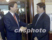 圖文:兩岸"三通"后臺灣客機(jī)可飛越大陸航區(qū) 2001年10月12日 17:14 ![]() 國家民航總局副局長鮑培德十二日在北京會見了以馮滬祥(右)為團(tuán)長的臺灣兩岸空運(yùn)直航訪問團(tuán)。臺灣方面的遠(yuǎn)東航空、復(fù)興航空、中華航空等六家航空公司的有關(guān)負(fù)責(zé)人作為訪問團(tuán)成員參加了會見。中新社記者 滿會喬 攝