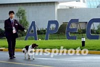 ![]() 上海警方出動警犬在APEC會議國際新聞中心巡邏,全球三千記者十四日開始進入清晨啟用的新聞工作區(qū)。中新社記者 賈國榮 攝 |