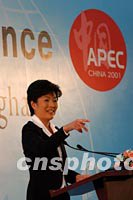 圖:章啟月就APEC會議總體安排問題答記者問 2001年10月14日 12:16 ![]() 2001年APEC會議中國籌委會秘書處發(fā)言人章啟月,十四日在新聞中心就2001年APEC會議總體安排問題舉行新聞發(fā)布會,回答中外記者提問。中新社記者 王瑤 攝 |
