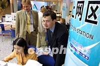 圖:俄國新聞官員考察APEC會議新聞中心 2001年10月15日 11:25 ![]() 俄國官員到上海APEC會議新聞中心的媒體通信工作區(qū)考察,他們對寬帶網(wǎng)高質信息傳遞服務表示滿意。中新社圖 劉殊瑾 攝 |