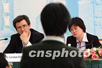 圖文:APEC官員呼吁加快貿(mào)易和投資自由化 2001年10月17日 17:56 ![]() APEC貿(mào)易投資委員會(huì)執(zhí)行主席GERMAN KING(左),十七日在上海國(guó)際新聞中心召開(kāi)新聞發(fā)布會(huì),他在回答中外記者提問(wèn)時(shí)說(shuō),貿(mào)易和投資自由化的推動(dòng)將有利于減弱恐怖活動(dòng)對(duì)世界經(jīng)濟(jì)的不良影響。中新社記者 王瑤 攝 ![]() 身著旗袍的上海小姐為APEC會(huì)議服務(wù),在十七日召開(kāi)的新聞發(fā)布會(huì)上,APEC貿(mào)易投資委員會(huì)執(zhí)行主席GERMAN KING向服務(wù)小姐點(diǎn)頭致謝。中新社記者 王瑤 攝