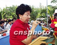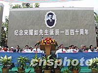 ![]() 紀(jì)念宋耀如誕辰140周年活動(dòng)在海南文昌舉行。海南各界與來(lái)自孫中山、宋慶齡紀(jì)念地代表及美國(guó)、馬來(lái)西亞、泰國(guó)的海外華人代表、臺(tái)灣客人等共二千多人在此紀(jì)念宋耀如誕辰140周年,并舉行孫中山、宋耀如塑像揭幕儀式。中新社圖 王辛莉 攝 ![]() 17日下午,孫中山和平教育基金會(huì)主席、孫中山孫女孫穗芳出席在海南文昌舉行的紀(jì)念宋耀如誕辰一百四十周年活動(dòng)。圖為孫穗芳在紀(jì)念大會(huì)上致辭。中新社圖 王辛莉 攝