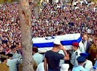 中新網(wǎng)北京10月19日消息:耶路撒冷訊,以色列18日為遇刺死亡的旅游部長雷哈瓦姆·澤維舉行國葬。 國葬儀式于當日下午在以色列議會廣場舉行。以總統(tǒng)卡察夫、總理沙龍、議長伯格、澤維家屬以及社會各界人士約數(shù)百人到場與澤維的遺體告別,悼念這位以政壇極右翼勢力的強硬代表。 據(jù)新華網(wǎng)的消息,澤維的靈柩將被安葬在耶路撒冷赫爾茨山公墓。 17日上午,澤維在東耶路撒冷附近下榻飯店遭解放巴勒斯坦人民陣線武裝人員襲擊,因傷勢過重醫(yī)治無效死亡。 相關(guān)報道:巴勒斯坦逮捕涉嫌暗殺以部長澤維的部分官員 相關(guān)報道:阿拉法特譴責暗殺以部長行為 下令緝拿兇手 相關(guān)報道:沙龍在以色列部長被殺后稱:一切都已改變 |