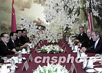 APEC快遞:江澤民主席與布什總統(tǒng)舉行會談 2001年10月19日 13:58 ![]() 10月19日,國家主席江澤民在上海西郊賓館會見美國總統(tǒng)布什。中新社圖 ![]() 10月19日,中國國家主席江澤民在上海與美國總統(tǒng)布什舉行會談。中新社圖