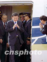 圖:泰國總理到滬 2001年10月19日 15:49 ![]() 泰國總理他信(左二)十九日中午十三時到達(dá)上海浦東機(jī)場,他將參加二十一日的APEC領(lǐng)導(dǎo)人非正式會議。中新社圖 劉殊瑾 攝 |