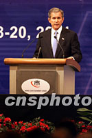 圖:美國總統(tǒng)布什在APEC演講 2001年10月20日 16:09 ![]() 美國總統(tǒng)布什二十日在上海香格里拉飯店舉行的亞太經(jīng)合組織工商領(lǐng)導(dǎo)人峰會上發(fā)表演講。中新社記者 毛建軍 攝 |