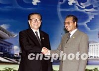 圖:江澤民迎接馬來(lái)西亞總理 2001年10月21日 11:36 ![]() 10月20日,中國(guó)國(guó)家主席江澤民在上海國(guó)際會(huì)議中心迎接馬來(lái)西亞總理馬哈蒂爾。中新社圖 |