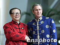 圖:江澤民在上?萍拣^迎接布什 2001年10月21日 17:25 ![]() 10月21日,中國國家主席江澤民在上海科技館迎接美國總統(tǒng)布什。亞太經(jīng)合組織第九次領(lǐng)導(dǎo)人非正式會(huì)議在這里舉行。中新社圖 |