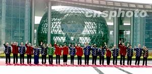 組圖:亞太經(jīng)合組織經(jīng)濟(jì)體領(lǐng)導(dǎo)人合影 2001年10月22日 09:44 ![]() 10月21日,參加亞太經(jīng)合組織第九次領(lǐng)導(dǎo)人非正式會議的經(jīng)濟(jì)體領(lǐng)導(dǎo)人在上?萍拣^樓前合影。圖為中國國家主席江澤民在合影時向在場記者揮手致意。中新社圖 ![]() 10月21日,參加亞太經(jīng)合組織第九次領(lǐng)導(dǎo)人非正式會議的經(jīng)濟(jì)體領(lǐng)導(dǎo)人在上海科技館樓前合影。中新社圖