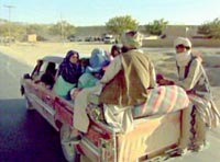 圖:阿富汗難民流離失所 2001年10月22日 14:35 ![]() 美軍空襲阿富汗以來(lái),每天都有大量阿富汗難民涌往阿邊境難民營(yíng),目前在巴基斯坦的阿難民已達(dá)三百萬(wàn)左右。圖為舉家逃難的阿富汗人。 |