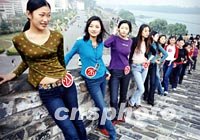 組圖:電視模特大賽在南京舉行 2001年10月30日 11:26 ![]() 一班模特十月底在南京古城墻上準備拍攝外景,她們參加由中央電視臺舉辦的“通靈翠鉆”杯模特大賽江浙滬湘賽區(qū)初賽,入圍的40名選手在南京決賽后將赴北京參加全國總決賽。中新社圖 劉小楚 攝 ![]() 40名從江蘇、浙江、上海、湖南200名參賽選手中初評出來的模特,十月底在南京準備參加決賽,脫穎者將赴北京中央電視臺參加全國總決賽。圖為入圍選手在南京臺城上拍攝外景。中新社圖 劉小楚 攝