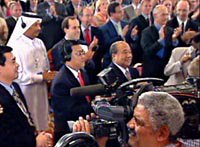 卡塔爾特寫:中國(guó)入世,一次空前的"盛宴"(附圖) 2001年11月11日 18:46 ![]() 第四屆WTO部長(zhǎng)會(huì)議十日晚在卡塔爾首都多哈舉行會(huì)議正式通過(guò)中國(guó)入世。圖為會(huì)議主席臺(tái)。中新社記者 錢興強(qiáng) 攝 ![]() 卡塔爾財(cái)政、經(jīng)濟(jì)和貿(mào)易大臣Youssef Hussain Kamal先生在多哈一槌落下宣布通過(guò)中國(guó)加入WTO時(shí),多哈WTO第四次部長(zhǎng)級(jí)會(huì)議的全體代表鼓掌向中國(guó)代表團(tuán)表示祝賀。