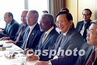 圖文:唐家璇主張,堅(jiān)決打擊“東突”恐怖勢(shì)力 2001年11月13日 10:06 ![]() 美東時(shí)間十二日中午,聯(lián)合國(guó)秘書(shū)長(zhǎng)安南在紐約聯(lián)合國(guó)總部宴請(qǐng)安理會(huì)五個(gè)常任理事國(guó)外長(zhǎng)。中國(guó)外長(zhǎng)唐家璇、美國(guó)國(guó)務(wù)卿鮑威爾等出席。中新社記者 陳建 攝