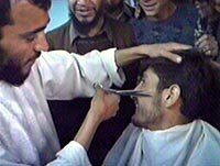 圖:喀布爾理發(fā)店熱了起來 2001年11月14日 11:11 ![]() 阿富汗北方聯(lián)盟十三日控制首都喀布爾后,喀布爾市民紛紛涌入理發(fā)店,修剪保留了五年的胡須。塔利班在1996年占領(lǐng)喀布爾后,實(shí)行嚴(yán)格的伊斯蘭教義,禁止男子剃掉胡須。中新社 |