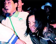 圖文:臺灣民進(jìn)黨造勢會發(fā)生內(nèi)訌 數(shù)百人互毆 2001年11月27日 09:04 ![]() 黃正男女兒黃露慧被打傷,其后男子眼角出血。(臺灣聯(lián)合報圖) 中新網(wǎng)香港11月27日消息:臺北訊,臺灣民進(jìn)黨昨晚在嘉義舉行的一場選前造勢會,發(fā)生民進(jìn)黨嚴(yán)重內(nèi)訌事件,數(shù)百人先后兩度發(fā)生沖突,互相毆打造成多人受傷。 由于民進(jìn)黨“立委”候選人蔡同榮在昨天的晚會上邀請陳水扁站臺造勢,同黨籍嘉義“市長”候選人黃正男的支持者認(rèn)為未獲通知,有不被尊重的感覺,遂在造勢場合上,一路追打蔡同榮。蔡同榮的小腿因此受輕傷。 這場沖突前后發(fā)生兩次,第一次在晚間8時陳水扁進(jìn)場時,黃正男的支持者為了一問究竟,當(dāng)場追打蔡同榮。第二次在陳水扁離去時,場內(nèi)再次打起來。 在喊打聲中,一陣拳打腳踢,黃正男的女兒黃露慧也被打傷。 現(xiàn)場消息指,參與互毆者達(dá)三四百人之眾。 陳水扁致辭時,黃正男的支持者在臺下特別以汽笛制造聲響抗議,陳水扁在臺上強(qiáng)調(diào)這場造勢晚會是為蔡同榮造勢,請大家保持“理性及風(fēng)度”。 陳水扁在臺上說話間,黃正男不顧安全人員引導(dǎo),強(qiáng)行走上演講臺左邊,遭安全人員擋在講臺樓梯旁。陳水扁在臺上大聲疾呼,黃正男表情頗為無奈,只好自行走下講臺并繞到講臺前面,但終被安全人員引導(dǎo)離開。 陳水扁在晚上8時45分結(jié)束演講,由安全人員護(hù)衛(wèi)搭車離開,部分在場民眾見狀,又朝車隊方向追逐,這時有人阻擋、有人吶喊,場面相當(dāng)混亂。 據(jù)指出,這場沖突的由來并不突然,嘉義“市長”選舉幾場造勢場合所引發(fā)的驚爆點,黃正男擁有民進(jìn)黨提名的身分,但在幾次造勢場合中,泛綠陣營支持無黨籍“市長”候選人陳麗貞的傳言甚囂塵上,黃正男則被指為陳水扁“棄!钡膶ο,終于引發(fā)黃正男的支持者不滿。 尤其在24日晚,陳水扁的老師、臺大教授李鴻禧在嘉義為陳麗貞站臺。當(dāng)時李鴻禧強(qiáng)調(diào),民進(jìn)黨推出的“市長”候選人根本“毫無勝算”,他自稱身為阿扁的老師,當(dāng)然知道陳水扁支持的是陳麗貞。 |