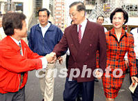 組圖:馬英九巡視臺北各街巷投票站 2001年12月01日 16:59 ![]() 國民黨籍的臺北市長馬英九被稱為本次臺灣選舉的五大競選天王(陳水扁、李登輝、連戰(zhàn)、宋楚瑜、馬英九),"小馬哥"清晨投票后趕到國民黨主席連戰(zhàn)的選區(qū)陪同連戰(zhàn)夫婦投票時,受到連戰(zhàn)住區(qū)的里長何信隆的歡迎。中新社記者 任晨鳴 攝 ![]() 國民黨籍的臺北市長馬英九12月1日陪同連戰(zhàn)和陳水扁投票后到各街區(qū)投票站巡視,馬英九表示臺北市警方已經(jīng)做好防范不允許暴力活動出現(xiàn)。中新社記者 任晨鳴 攝