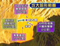 圖:坎大哈形勢圖 2001年12月03日 15:30 ![]() 美軍二日對塔利班大本營坎大哈附近機(jī)場進(jìn)行了新一輪轟炸。隨著美軍和北方聯(lián)盟對坎大哈合圍形勢的形成,坎大哈的境遇更加岌岌可危。圖為日前坎大哈形勢圖。 |