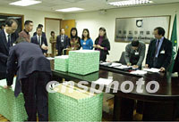 ![]() 澳門娛樂場博彩經(jīng)營牌照競投七日截標(biāo),共有二十一家公司參加競投。圖為博彩監(jiān)察暨協(xié)調(diào)廳的工作人員為競投者辦理驗(yàn)標(biāo)手續(xù)。中新社傳真宗金柱攝