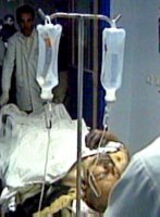 圖:以色列直升機(jī)轟炸希伯倫 2001年12月11日 11:37 ![]() 希伯倫一名受傷的巴勒斯坦人十一日在醫(yī)院接受治療。以色列軍隊(duì)十日出動(dòng)武裝直升機(jī)向希伯倫發(fā)射火箭炮,造成兩名小孩死亡,五人受傷。 |