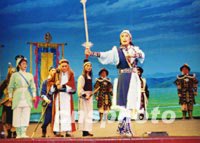 圖:金庸小說(shuō)《射雕英雄傳》搬上京劇舞臺(tái) 2001年12月11日 17:27 ![]() 武漢市京劇團(tuán)根據(jù)金庸的武俠小說(shuō)《射雕英雄傳》改編而成的同名京劇,十二月十日晚在南京大行宮會(huì)堂成功上演,成為第三屆中國(guó)京劇節(jié)唯一的一臺(tái)武俠劇。原著中描寫(xiě)高深莫測(cè)的武功借助京劇中的“出手”及現(xiàn)代特技,得到了較好表現(xiàn)。中新社圖 劉小楚 攝 |